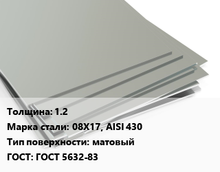 Лист нержавеющий 1.2 Сталь: 08Х17, AISI 430 Тип:матовый ГОСТ 5632-83, м2 цена от 1 595 Р / т, где купить, условия доставки в Могилеве и Могилёвской области