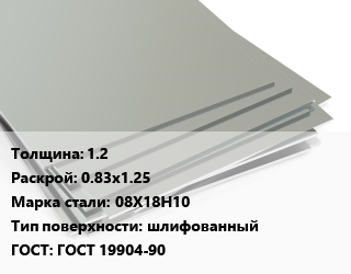 Лист нержавеющий 1.2 0.83х1.25 Сталь: 08Х18Н10 Тип:шлифованный ГОСТ 19904-90