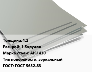 Лист нержавеющий 1.2 1.5хрулон Сталь: AISI 430 Тип:зеркальный ГОСТ 5632-83, шт цена от 161 840 Р / т, где купить, условия доставки в Могилеве и Могилёвской области