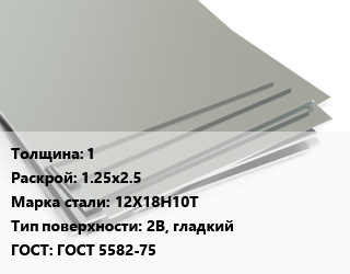 Лист нержавеющий 1 1.25х2.5 Сталь: 12Х18Н10Т Тип:2B, гладкий ГОСТ 5582-75