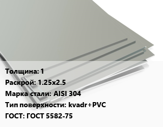 Лист нержавеющий 1 1.25х2.5 Сталь: AISI 304 Тип:kvadr+PVC ГОСТ 5582-75