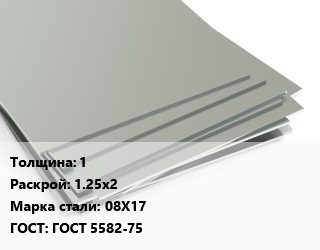 Лист нержавеющий 1 1.25х2 Сталь: 08Х17 ГОСТ 5582-75