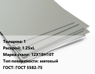 Лист нержавеющий 1 1.25хL Сталь: 12Х18Н10Т Тип:матовый ГОСТ 5582-75