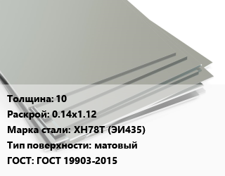Лист нержавеющий 10 0.14х1.12 Сталь: ХН78Т (ЭИ435) Тип:матовый ГОСТ 19903-2015