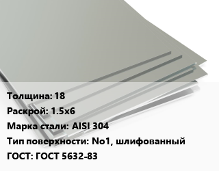 Лист нержавеющий 18 1.5х6 Сталь: AISI 304 Тип:No1, шлифованный ГОСТ 5632-83