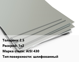 Лист нержавеющий 2.5 1х2 Сталь: AISI 430 Тип:шлифованный